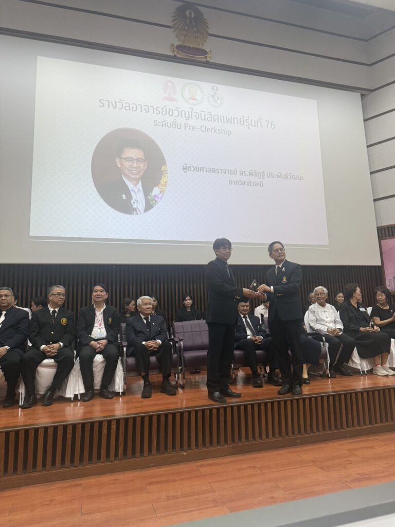คณาจารย์ เจ้าหน้าที่ ร่วมแสดงความยินดีกับ ผศ.ดร.พิสิฏฐ์ ประพันธ์วัฒนะ ที่ได้รับรางวัลอาจารย์ขวัญใจนิสิตแพทย์ ประจำปีการศึกษา 2568 ในวันจันทร์ที่ 23 มี.ค.69 เวลา 11.00 น. ณ ห้องประชุมเฉลิมพรมมาศ อาคาร อปร